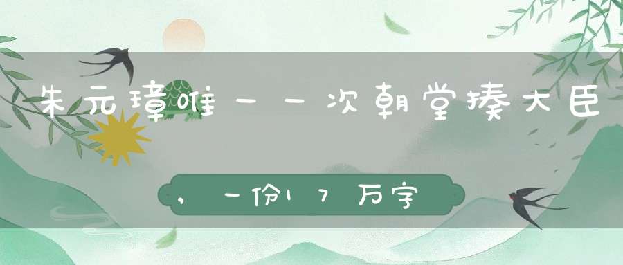 明太祖反对奏折冗长是有原因的。他曾对太子朱标说:;我自从登基以来,事事都亲自处理,从不偷懒,每天天不亮就起床,上朝办事,晚上夜深了才休息。这是你亲眼看到的。你能照我这样做,才能保住江山。所以,朱元璋平日十分辛苦,常常在吃饭的时候突然想起一件事情来,就赶忙放下筷子,把要办的事儿写到纸片上,又怕纸片丢失,叫人用针线缝在他的衣服上。有时想的事情一多,纸片缀了满身,就像吊着好多只鹌鹑。等到第二天早朝的时候,他把纸片一一揭下来逐件处理,直到认为办妥为止。据说,他每天要看和听200多道奏折,要处理400件左右的事情。所以,他一直要求奏章写得简短扼要。难怪他看见茹太素的万言书,竟发了那么大的火。