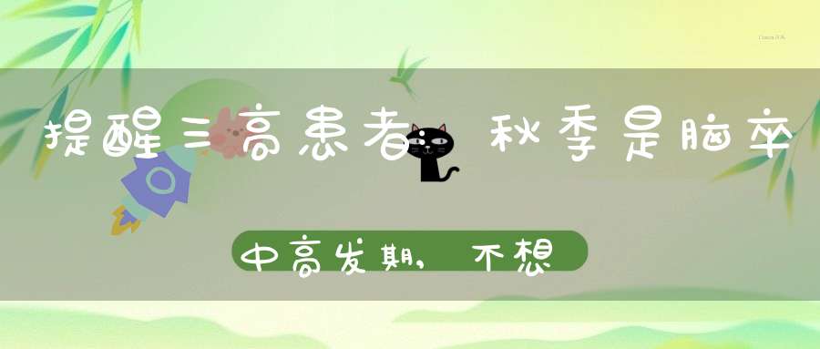 那么问题来了,秋季已经到来,到底该如何做,才能将脑卒中的病发率降到最低点呢?