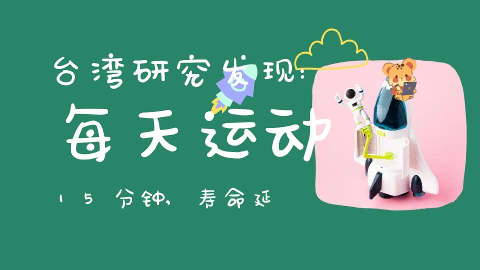 每天只要运动15分钟,每周六天共约90分钟,就可降低总死亡率14%,癌症死亡率10%,心血管疾病死亡率20%,延长寿命3年。台湾卫生研究院教授温启邦在《柳叶刀》上发表的《降低死亡率,延长寿命的最少运动量》一文中,提到的这项突破性新发现颠覆了“运动333”(每周三次运动,每次30分钟,维持每分钟心跳达130下)或每周运动150分钟的现有观念,而认为少量而持续的运动对健康大有益处,而且容易达成。