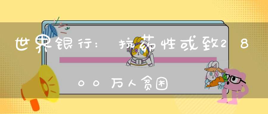记者日前从世界银行驻华代表处获悉,世界银行最新报告《抗药性感染:对我们经济前景的威胁》称,研究结果显示,按照对抗菌药耐药性的情景预测,在高情景下,即抗生素和其他抗菌药对治疗感染不再有效,到2050年可能给全球年度GDP造成5%以上的损失,导致多达2800万人陷入贫困。