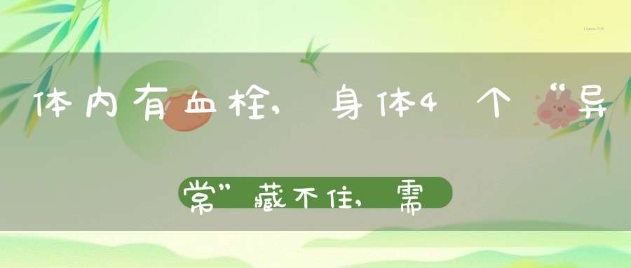 据有关专家表示,血栓的治疗必须要趁早。所以下面给大家列举几种身体的“异常“,如果出现在你的生活中,很可能是血管出现了堵塞,请重视起来。