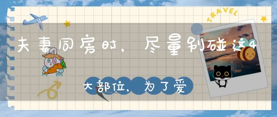 能保证夫妻生活的规律和谐,收获的好处颇多,除了燃烧脂肪,促进血液循环,还能调节内分泌,增进夫妻的感情。但是,同房不能忽略细节,有的人犯错误,可能会给健康造成影响,其中有的重要地方不能碰,如果长时间去触碰,很可能出现健康问题,下面来展开了解。