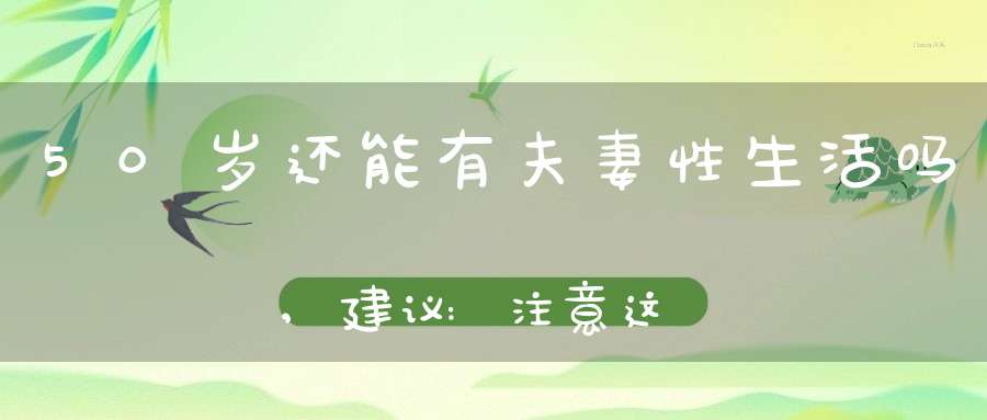 50岁已经进入了中老年阶段,开始往老年阶段迈进,和二三十岁的人相比有相关衰老变化了,但此时依然可以进行夫妻生活。本身夫妻性生活年龄没有限制,到了七八十岁依然对这方面有需求,身体条件满足,可以继续同房。
