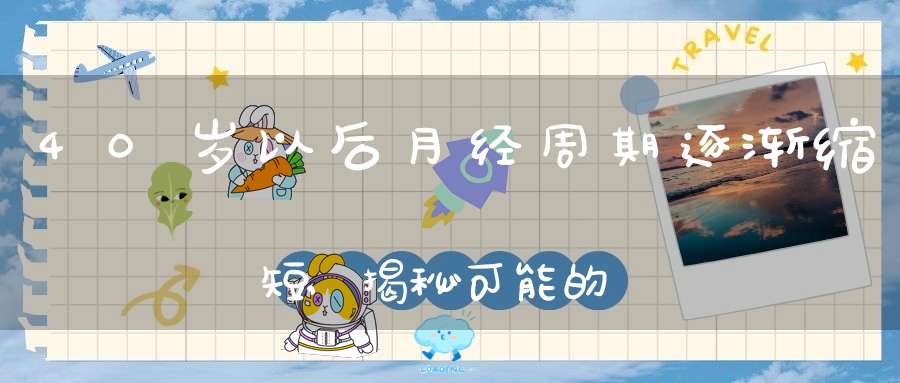 2、卵巢功能衰退:40岁以后女性的卵巢功能可能会逐渐衰退,此时月经周期受到影响,有可能会出现月经周期缩短的现象。