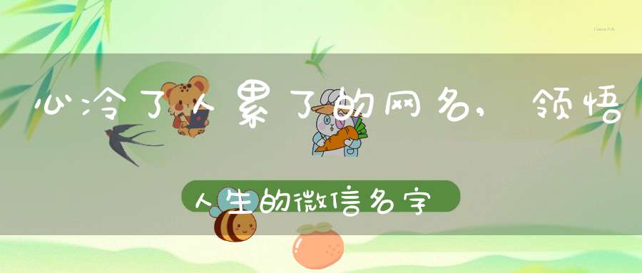 心冷了人累了的网名:泥足深陷,美人蛇蝎心肠,没有谁会在原地等着谁,凉薄,泪水模糊了双眼,旧心新人,久而旧之,久爱成伤,戒不掉的思念,姐的孤独你不懂,渐渐变得成熟,坚强明天,坚强苦撑,回忆怺逺湜哪么楛涩,花朵般的孩子,后来无人像你,跟自己说声对不起,领悟人生的微信名字:感动的很难受,分开后还想念,多情总被无情伤,懂得你的悲伤,当爱已成往事,茶凉言尽,曾经醉美,残伤,猜不透你的心思,不真实的童话,不美不萌,病态恩爱,翱翔天空,爱情从未后悔过,爱从指缝间溜走。