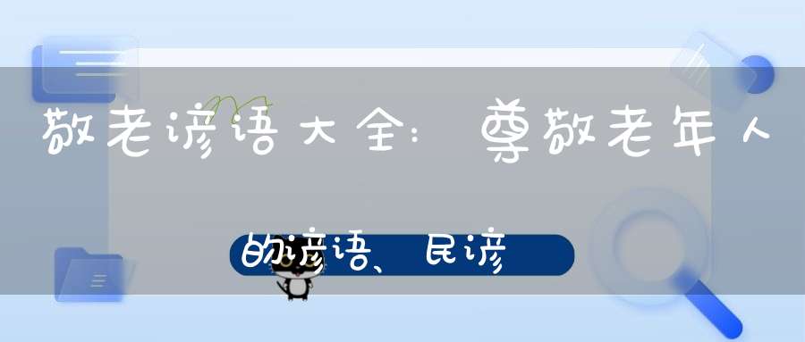 敬老谚语大全:尊敬老年人的谚语、民谚