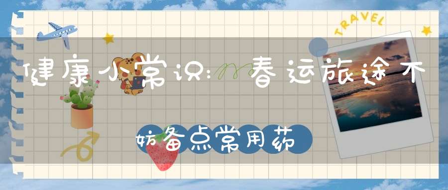 随着春节临近,出行人数日渐攀升。而旅途劳顿、饮食卫生条件受限及车厢或轮船中空气流动不畅等客观因素,都有可能导致旅途中的人们患病。针对这些情况,我们不妨备点常用药。