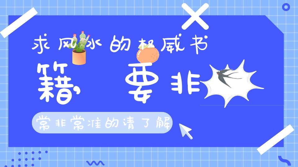 求风水的权威书籍,要非常非常准的。请了解的给推荐一下。我觉得要做风水学的花,四柱是大前提,看宅先看人,毕竟人住宅中,宅为人生,人还是核心.四柱学:《千里命稿》作者为民国时期人士,语言通俗,内容深入浅出,理论精准到位,适合初学者《子平真诠》真正入门四柱的必读之书,它体系完备,论述细致,是子平法的重要典籍《滴天髓》四柱学中难以超越的巅峰之作,深邃难艰,被今人推崇为”命理学的圣经“《穷通宝鉴》易学的”字典式“著作,看似简单其理甚深,需要有基础才能彻底理解《渊海子平》命理学的开山之作,研读其中的歌赋诗词是成为论命高手的必经之路以上按入门至高手顺序排列....风水学:《八宅明镜》(八宅)《平砂玉尺经》《阳宅三要》《阳宅十书》《沈氏玄空学》(玄空)《吕氏风水学》(过路mgc阳)《绘图地理原真直指》,为清代四明老僧著。
