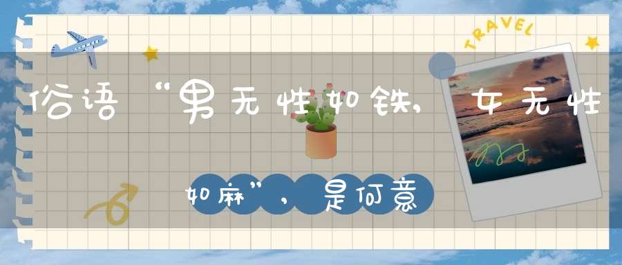 俗语“男无性如铁,女无性如麻”,简单来说就是男人应该有主见有担当,承担起家庭和社会的责任,而女人应该有自己独立的思想和才能,不要过度依赖别人。
