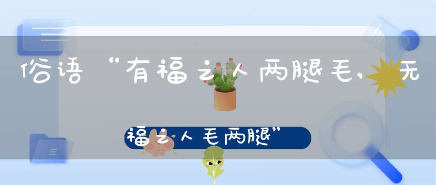 我们读很多古言俗语,经常会感觉就特别的有趣,甚至还为此买了很多的谚语大全,还有民间民俗禁忌等等的书,当然我也看到了很多非常有趣的故事,今天我就想给大家分享一句,叫做“有福之人两腿毛,无福之人毛两腿”,这一句话听起来确实特别的突兀,怎么你有福没福还跟腿毛给扯上关系了?