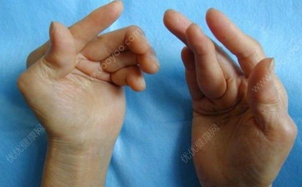 4、病情和病程有个体差异,从短暂、轻微的少关节炎到急剧进行性多关节炎。受累关节以近端指间关节、掌指关节、腕、肘、肩、膝和足趾关节最为多见;颈椎、颞颌关节、胸锁和肩锁关节也可受累,并伴活动受限;髋关节受累少见。关节炎常表现为对称性、持续性肿胀和压痛,晨僵常长达1小时以上。最为常见的关节畸形是腕和肘关节强直、掌指关节的半脱位、手指向尺侧偏斜和呈“天鹅颈”样及钮孔花样表现。重症患者关节呈纤维性或骨性强直,并因关节周围肌肉萎缩、痉挛失去关节功能,致使生活不能自理。除关节症状外,还可出现关节外或内脏损害,如类风湿结节,心、肺、肾、周围神经及眼等病变。
