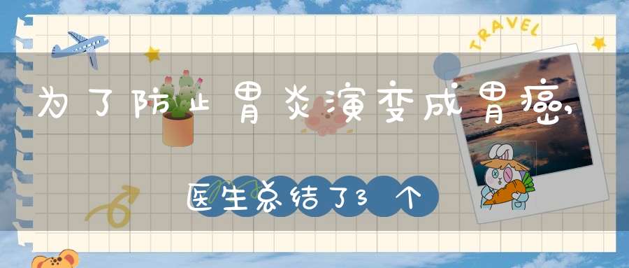 除此之外,还有什么比较好的办法可以防止胃炎演变成胃癌呢?一般来说做到以下三点就可以在很大程度上避免胃炎演变成胃癌。