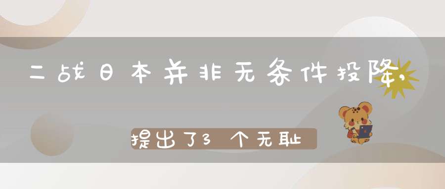 14年的抗战,随着美国投放的两颗原子弹宣告结束,而日本最终也不得不选择投降;可很多人不知道的是,二战日本并非无条件投降,提出了3个无耻条件,不答应誓死不降。日本虽然被美国打得认清了现实,但在最后投降的时候却依然提出了三个条件,而美国介于利益也同意的日本提出的三个无耻条件。