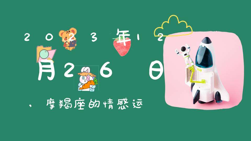 摩羯座是一个土相星座,以其务实、冷静、严肃的性格而闻名。摩羯座的感情运势将在2023年12月26日发生变化。这一天摩羯座的感情运势相对稳定。它们也许能感受到一种内心的平静与平静,使它们能够更好地关注自己和他人的需要。如果他们有稳定的伴侣关系,他们会发现自己更愿意在家庭和爱情之间找到平衡。