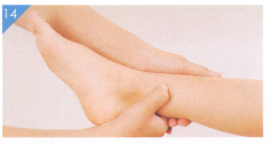 按摩手法:基本按摩手法加清小肠经300次(图11)、推六腑100次 (图12)、按揉阴陵泉、三阴交穴各1分钟(图13、图14)。