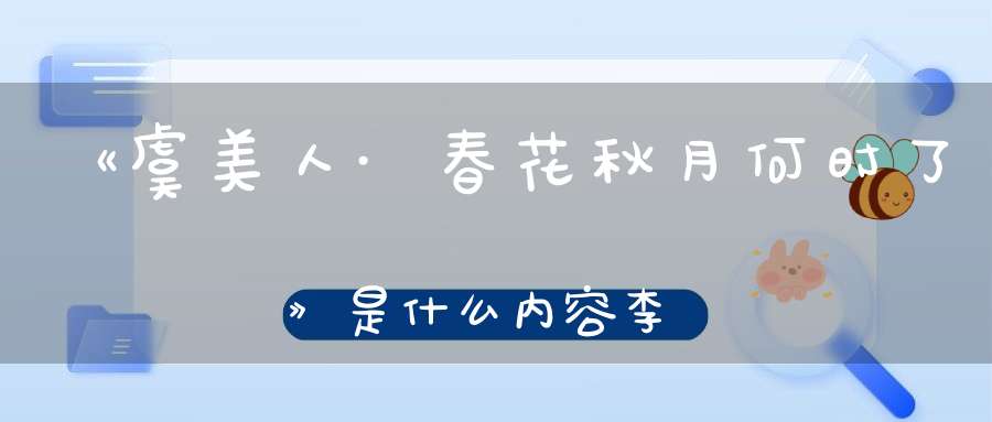 《虞美人·春花秋月何时了》是南唐后主李煜在被囚禁期间,即将面临生命终结之际所作的一首绝命词,表达了他对故国的深深眷恋与无尽哀愁。